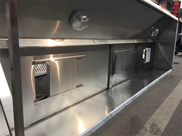 鐵制排煙罩僅為一矩形鐵制罩子,上開一孔接排煙管,罩在灶臺(tái)的上方。利用熱空氣上升的原理使油煙自然抽出室外。該種排煙罩工藝簡(jiǎn)單,成本低廉,但排煙效果較差,只適用于煙霧不大的小型飲食場(chǎng)所。目前沒有定型產(chǎn)品,而是根據(jù)灶具的大小現(xiàn)場(chǎng)制作。